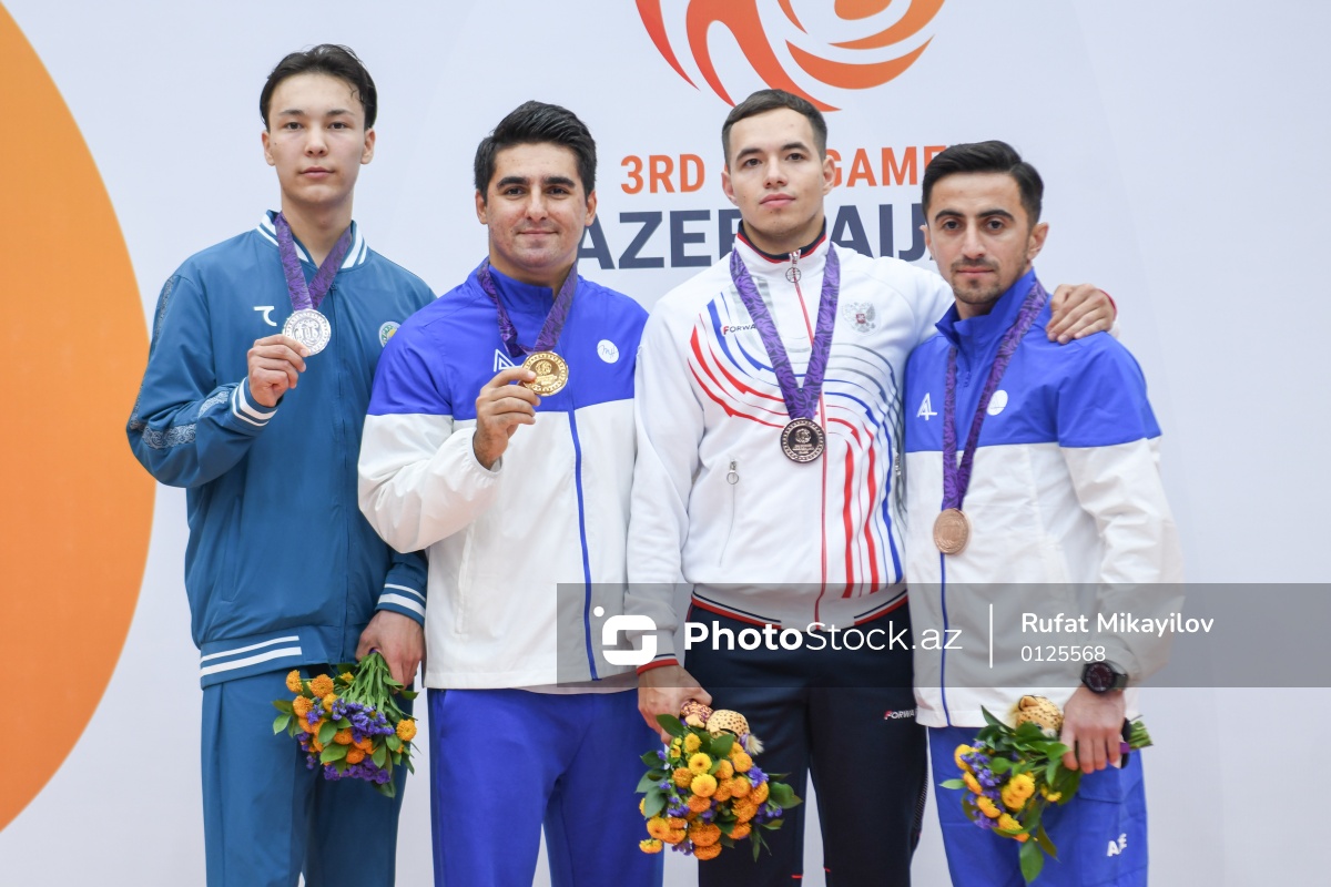 III MDB Oyunlarında fərdi kata yarışlarında (soldan-sağa) gümüş medal qazanan Özbəkistan təmsilçisi Samandar Urazaliev, qızıl medal alan Azərbaycan karateçisi Roman Heydərov, bürünc medal qazananlar Rusiya təmsilçisi Konstantin Sutiagin və Azərbaycan idmançısı Rövşən Əliyev.