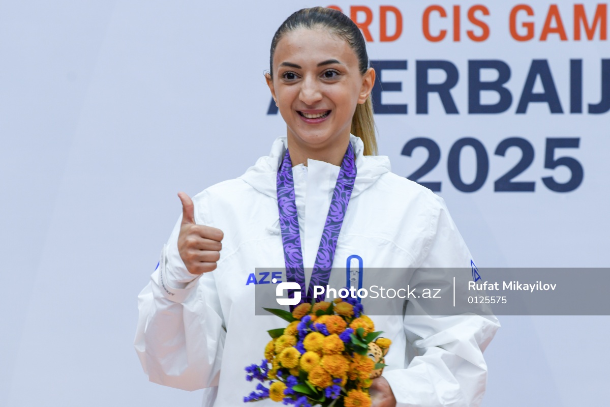 III MDB Oyunlarında 55 kq çəki dərəcəsində qızıl medal qazanan Azərbaycan karateçisi Mədinə Sadiqova.