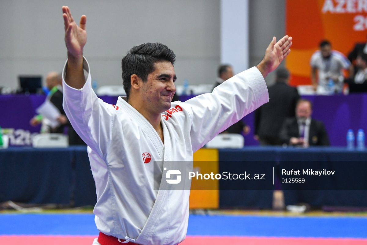 III MDB Oyunlarında fərdi kata yarışında qızıl medal qazanan Azərbaycan karateçisi Roman Heydərov.