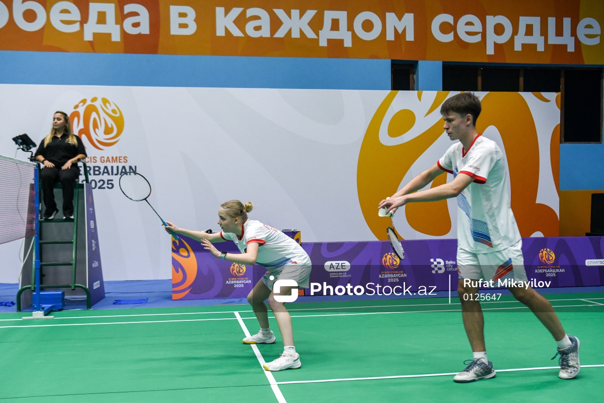 III MDB Oyunlarında iştirak edən Rusiya badmintonçuları Anastasiia Golubeva (sol) və Aleksei Ivanov (sağ).