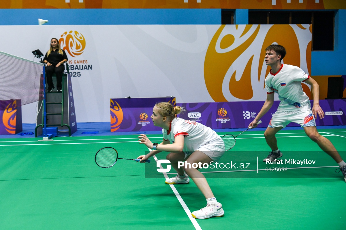 III MDB Oyunlarında iştirak edən Rusiya badmintonçuları Anastasiia Golubeva (sol) və Aleksei Ivanov (sağ).