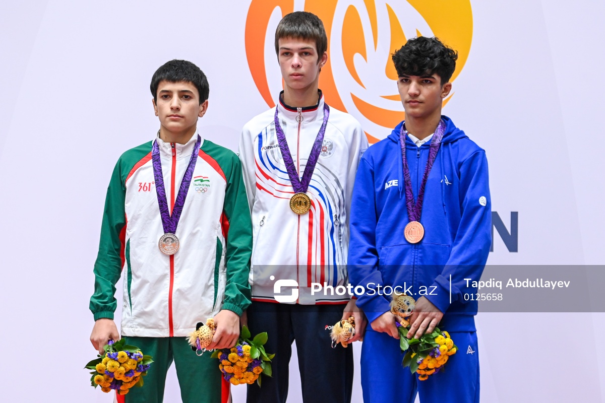 III MDB Oyunlarında cüdo üzrə 50 kq çəki dərəcəsində yarışlarda (soldan-sağa) gümüş medal qazanan Tacikistan cüdoçusu Yusuf Zamonov, qızıl medal alan Rusiya təmsilçisi Gleb Stekanov, bürünc medal qazanan Azərbaycan cüdoçusu Anar Quliyev.