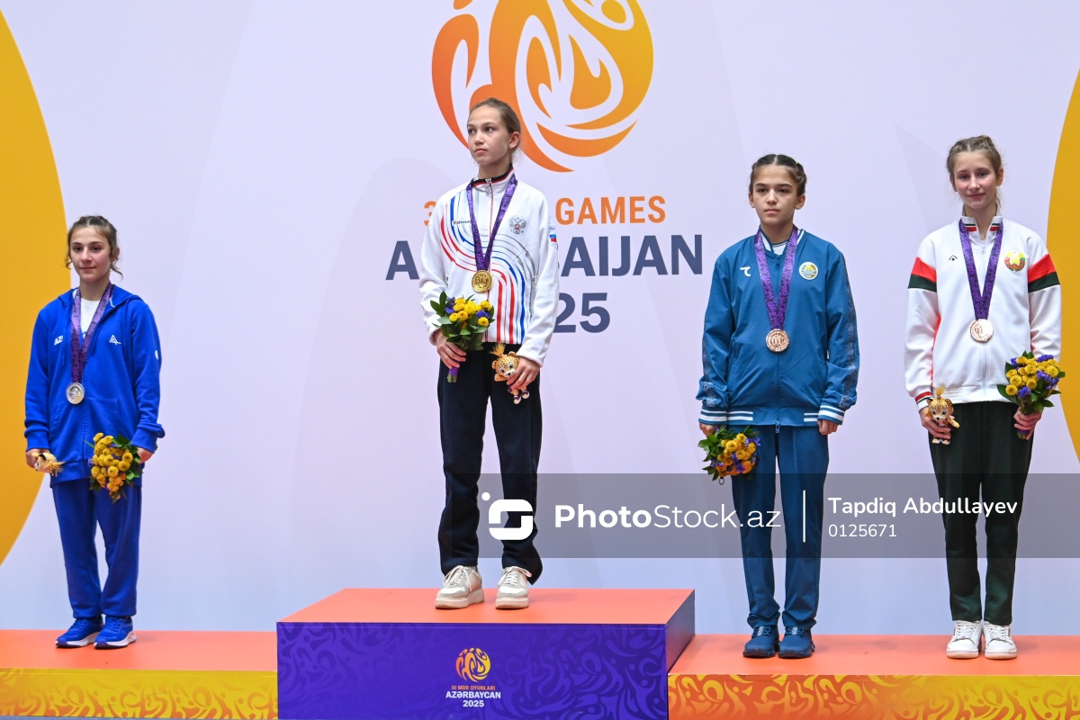 III MDB Oyunlarında cüdo üzrə 40 kq çəki dərəcəsində yarışlarda (soldan-sağa) gümüş medal qazanan Azərbaycan cüdoçusu Sunay Salamova, qızıl medal alan Rusiya təmsilçisi Emilia Saifutdinova, bürünc medal qazananlar Özbəkistan cüdoçusu Mohinur Ollaberganova və Belarus cüdoçusu Aliaksandra Kniazeva.