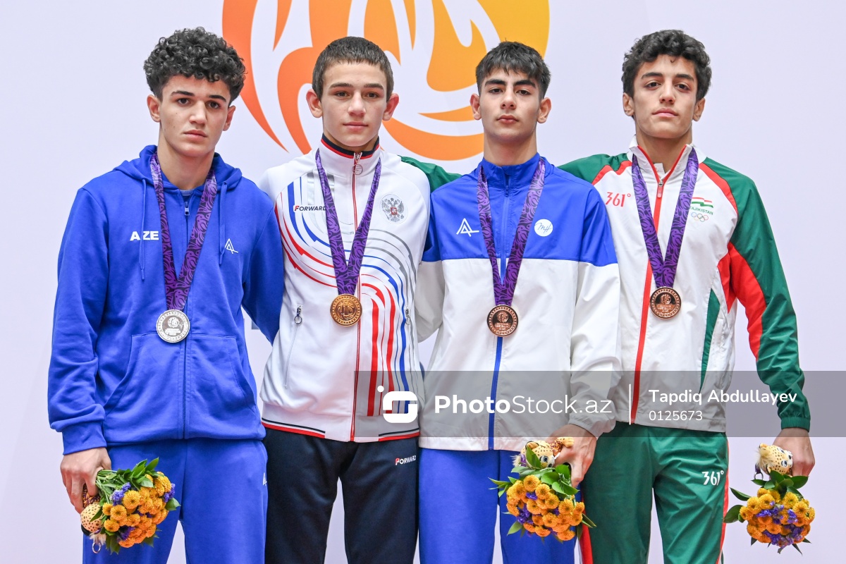III MDB Oyunlarında cüdo üzrə 55 kq çəki dərəcəsində yarışlarda (soldan-sağa) gümüş medal qazanan Azərbaycan cüdoçusu Məhəmmədəli Hüsüyev, qızıl medal alan Rusiya təmsilçisi Artem Babonets, bürünc medal qazananlar Azərbaycan cüdoçusu İbrahim Talıbov və Tacikistan təmsilçisi Abubakr Khudoiev.