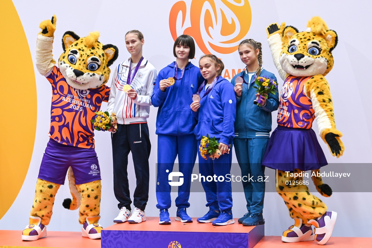 III MDB Oyunlarında cüdo üzrə 44 kq çəki dərəcəsində yarışlarda (soldan-sağa) gümüş medal qazanan Rusiya cüdoçusu Anastasiia Shevchuk, qızıl medal alan Azərbaycan təmsilçisi Gülşən Hüseynova, bürünc medal qazananlar Azərbaycan cüdoçusu Xədicə Abdullayeva və Özbəkistan təmsilçisi Alina Kolyucheva.