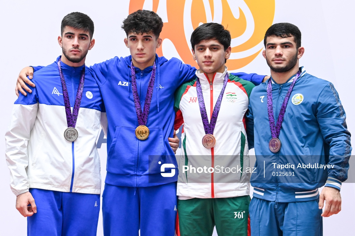 III MDB Oyunlarında cüdo üzrə 60 kq çəki dərəcəsində yarışlarda (soldan-sağa) gümüş medal qazanan Azərbaycan cüdoçusu Röyal Qayıbov, qızıl medal alan Azərbaycan idmançısı Zeyd Ələsgərov, bürünc medal qazananlar Tacikistan cüdoçusu Loiq Kudbudinov və Özbəkistan təmsilçisi Dilshod Karimov.