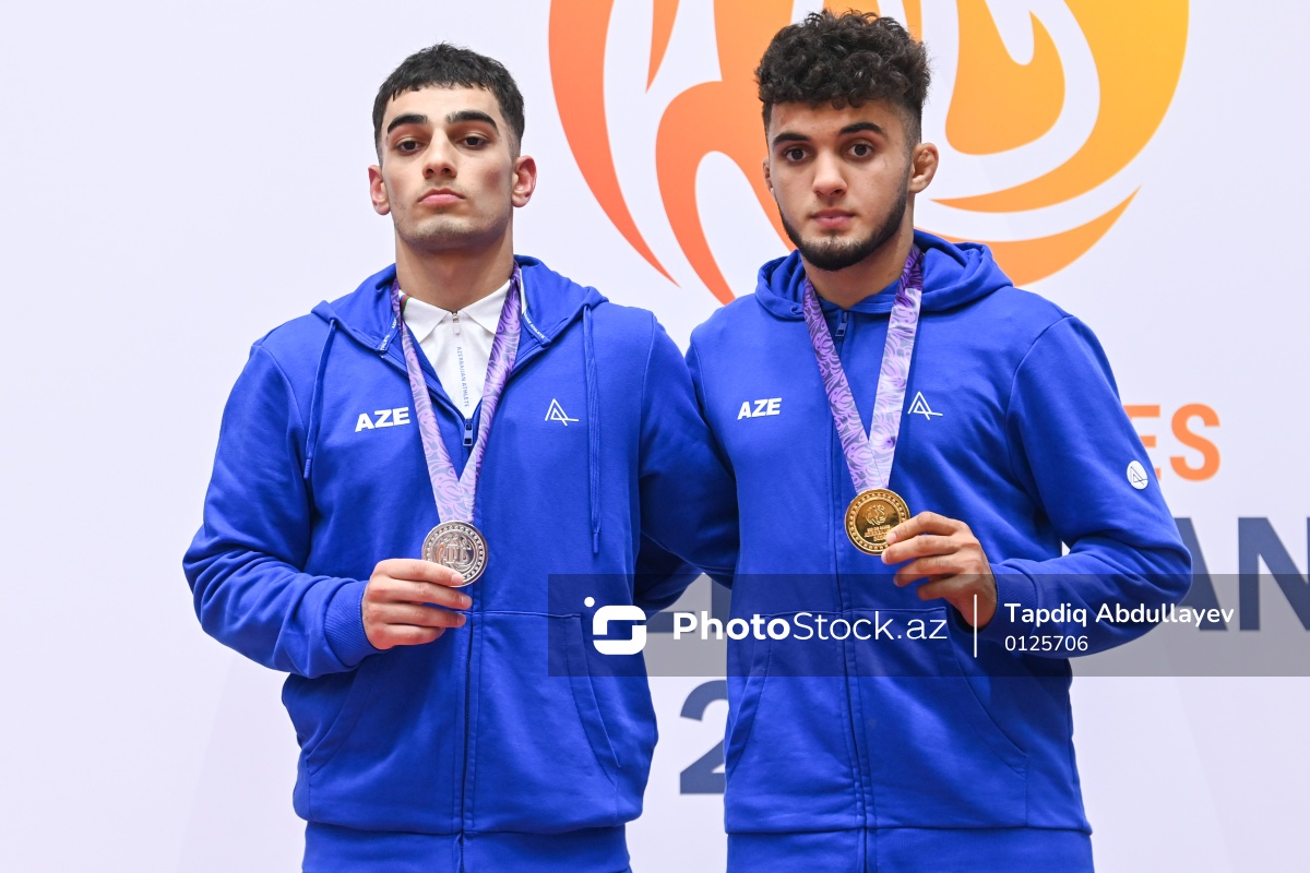 III MDB Oyunlarında 66 kq çəki dərəcəsində yarışlarda gümüş medal qazanan Azərbaycan cüdoçusu Hüseyn Hüseynov (sol) və qızıl medal alan Azərbaycan təmsilçisi Fəxri Sahibzadə (sağ).