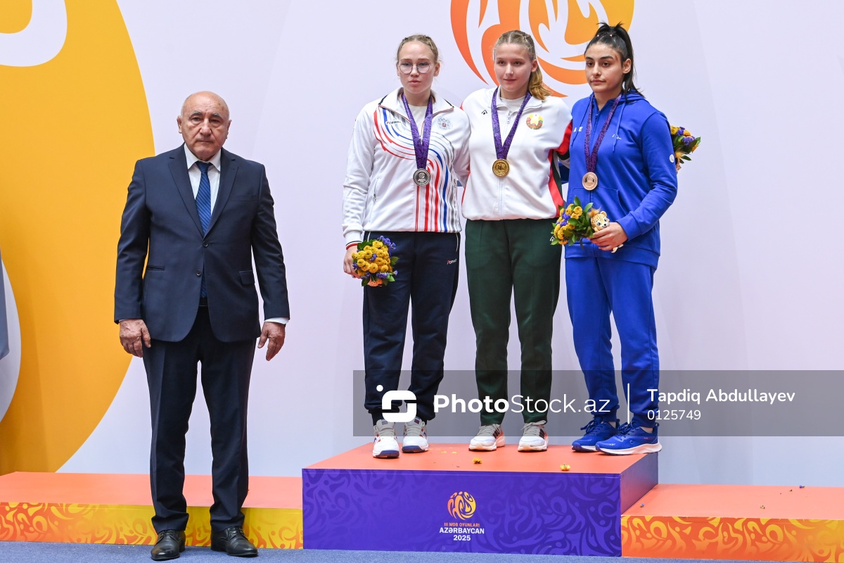 III MDB Oyunlarında cüdo üzrə 70 kq çəki dərəcəsində yarışların mükafatlandırma mərasimində iştirak edən (soldan-sağa) Azərbaycan Cüdo Federasiyasının Hakimlər Komitəsinin üzvü Abbas Şahverdiyev, gümüş medal qazanan Rusiya cüdoçusu Alina Chekmareva, qızıl medal alan Belarus cüdoçusu Sofya Yarmantovich, bürünc medal qazanan Azərbaycan cüdoçusu Fidan Cəlilli.