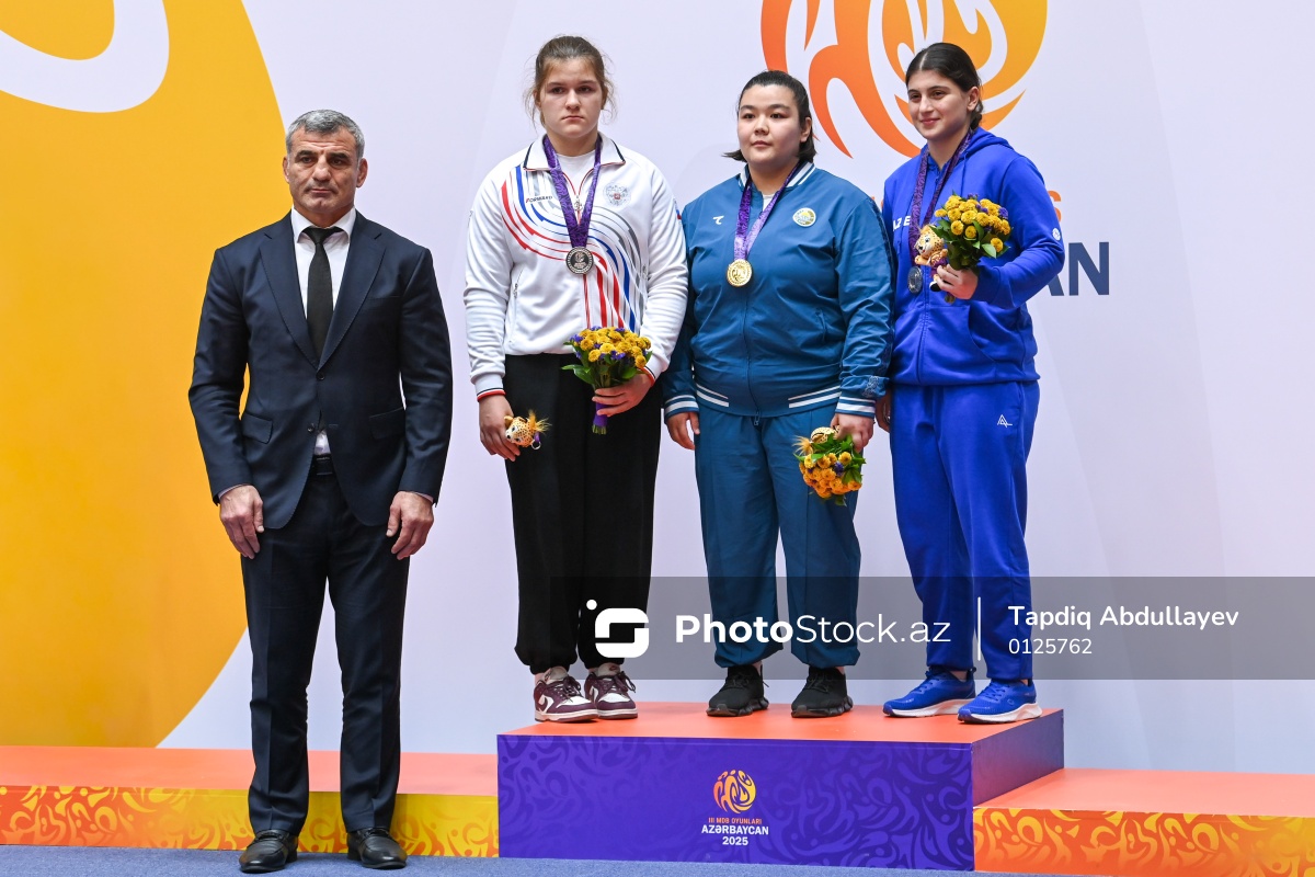 III MDB Oyunlarında cüdo üzrə +70 kq çəki dərəcəsində yarışların mükafatlandırma mərasimində iştirak edən (soldan-sağa) cüdo üzrə olimpiya və dünya mükafatçısı Mövlud Mirəliyev, gümüş medal qazanan Rusiya cüdoçusu Polina Nikishina, qızıl medal alan Özbəkistan cüdoçusu Zarina Bobonazarova, bürünc medal qazanan Azərbaycan cüdoçusu Zemfira Əliyeva.
