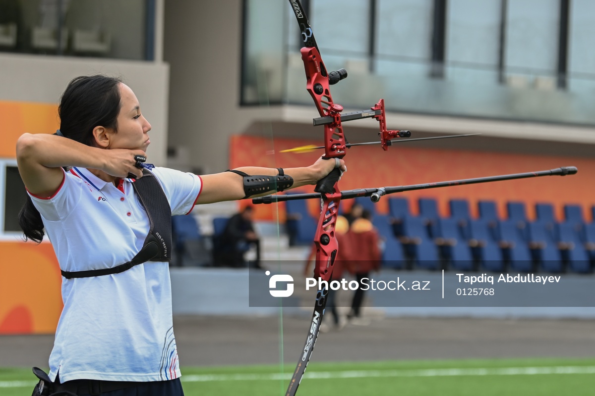 III MDB Oyunlarında kamandan oxatma üzrə yarışlarda iştirak edən Rusiya təmsilçisi Aleksandra Tsydenova.