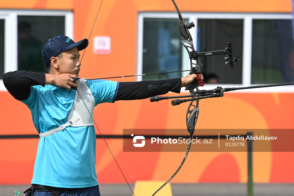 III MDB Oyunlarında kamandan oxatma üzrə yarışlarda iştirak edən Qazaxıstan təmsilçisi Raiymbek Maikibayev.