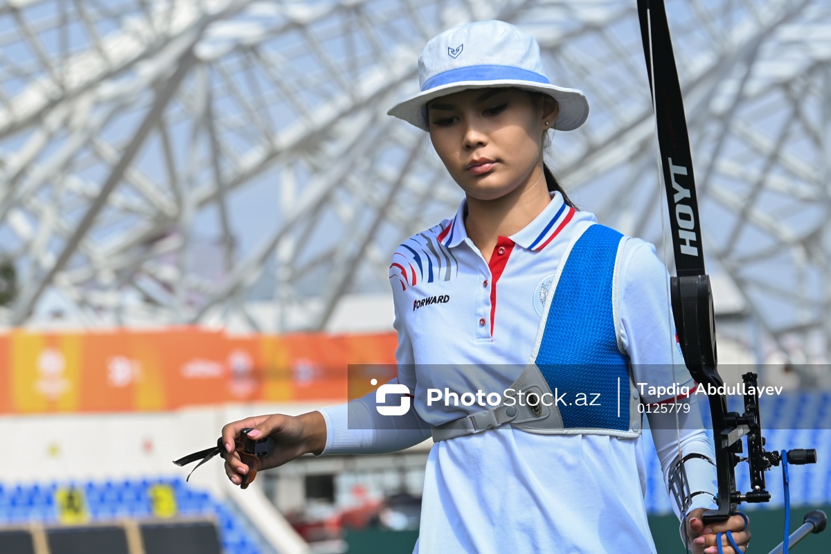 III MDB Oyunlarında kamandan oxatma üzrə yarışlarda iştirak edən Rusiya təmsilçisi Mariia Taraiarova.