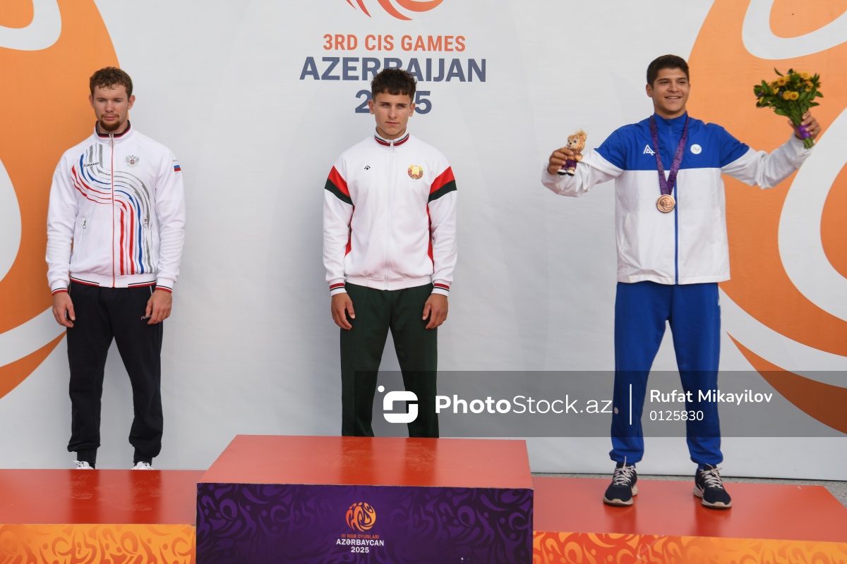 III MDB Oyunlarında avarçəkmə üzrə yarışlarda 2007-2008-ci il təvəllüdlü idmançılar arasında 200 metr məsafədə (soldan-sağa) gümüş medal qazanan Rusiya təmsilçisi Anton Krasnov, qızıl medal qazanan Belarus təmsilçisi Emil Abalmasau, bürünc medal qazanan Azərbaycan idmançısı Amil Ramazanov.