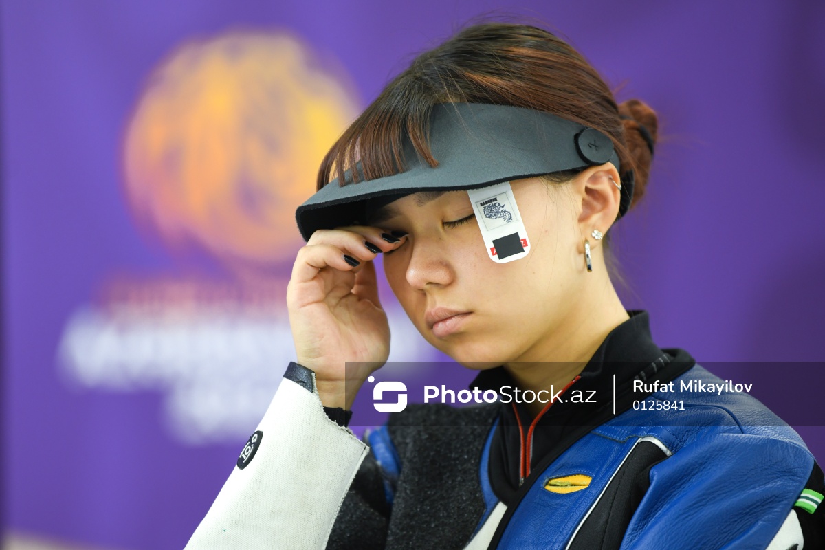 III MDB Oyunlarında güllə atıcılığı üzrə 10 metr məsafəyə atəş açma yarışlarında mübarizə aparan Qazaxıstan təmsilçisi Alexandra Le.