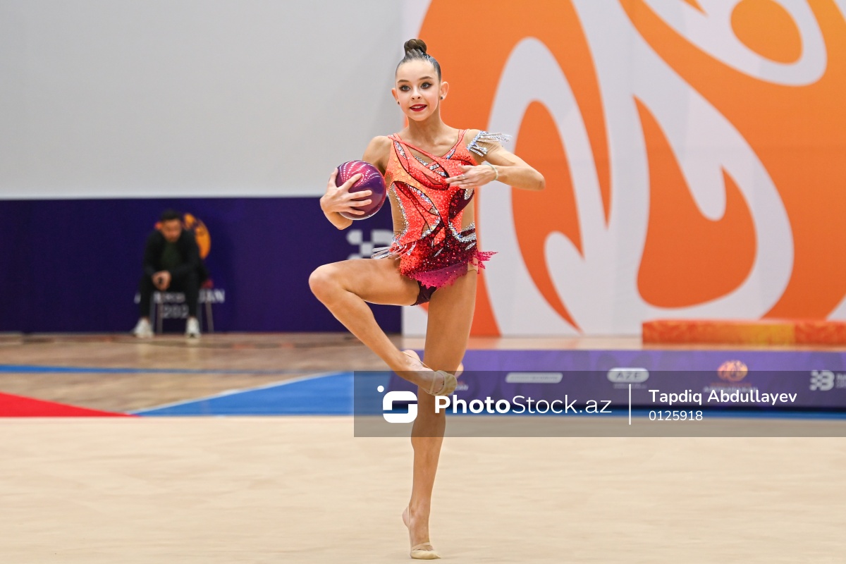 III MDB Oyunlarında bədii gimnastika üzrə yarışlarda mübarizə aparan Rusiya təmsilçisi Sofiia Ilteriakova.