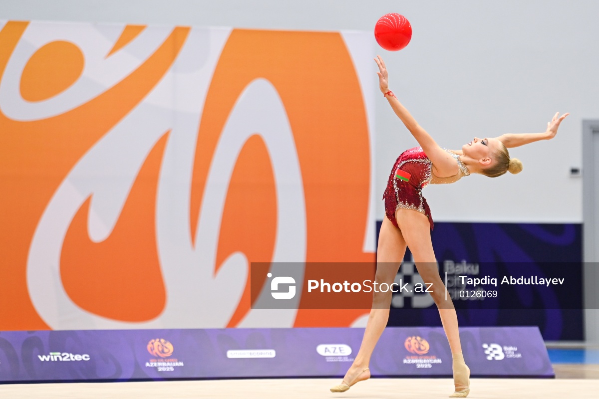 III MDB Oyunlarında bədii gimnastika üzrə yarışlarda mübarizə aparan Belarus təmsilçisi Kira Babkevich.