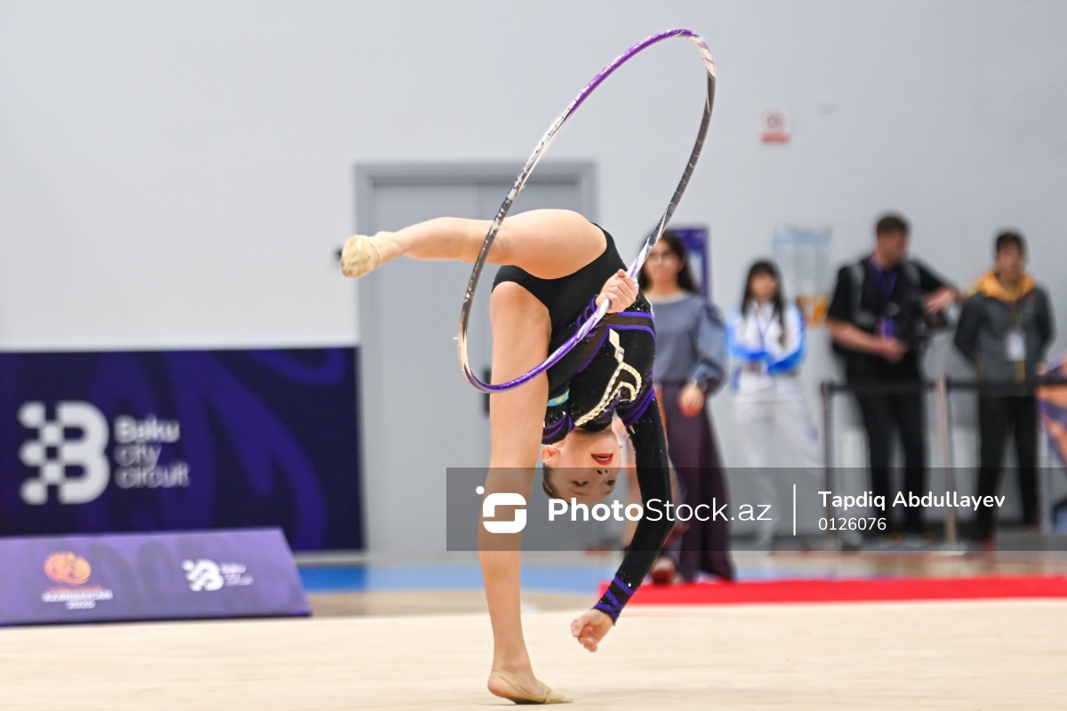 III MDB Oyunlarında bədii gimnastika üzrə yarışlarda mübarizə aparan Qazaxıstan təmsilçisi Kaussar Meirambekkyzy.