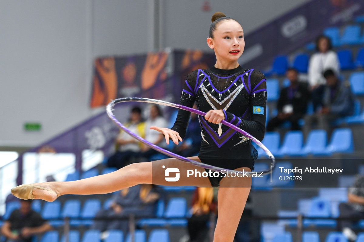 III MDB Oyunlarında bədii gimnastika üzrə yarışlarda mübarizə aparan Qazaxıstan təmsilçisi Kaussar Meirambekkyzy.
