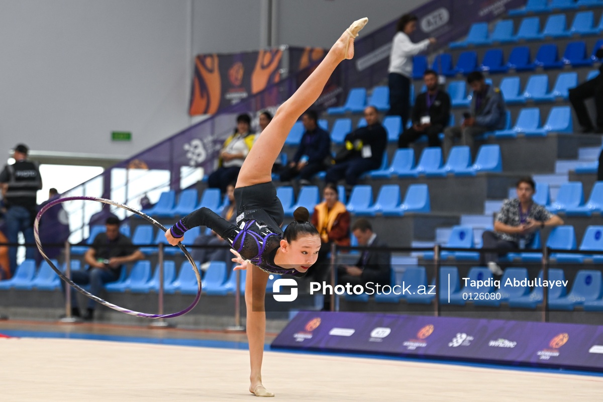 III MDB Oyunlarında bədii gimnastika üzrə yarışlarda mübarizə aparan Qazaxıstan təmsilçisi Kaussar Meirambekkyzy.