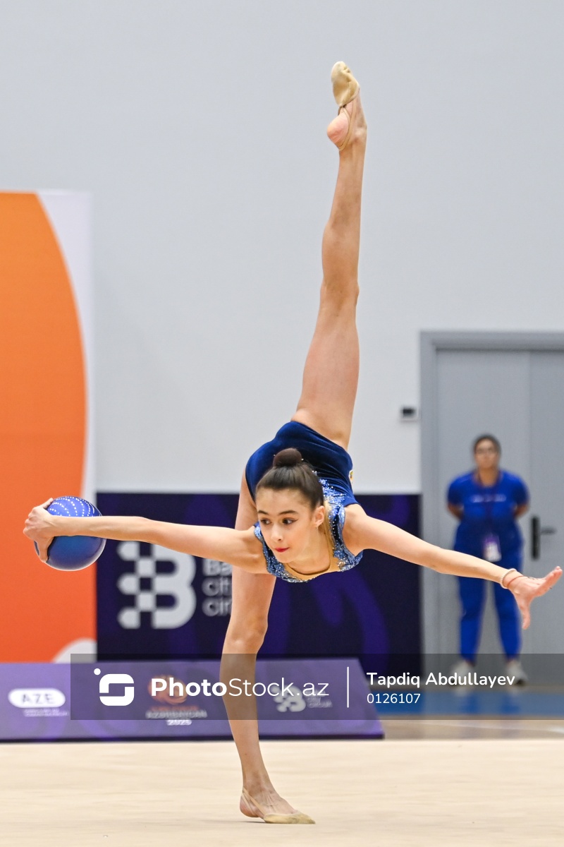 III MDB Oyunlarında bədii gimnastika üzrə yarışlarda mübarizə aparan Azərbaycan təmsilçisi Azadə Atakişiyeva.