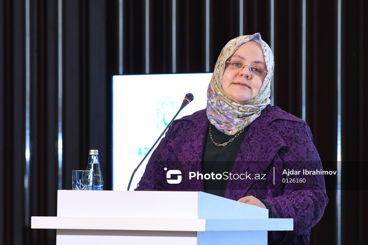 Azərbaycan Halal Biznes Forumunda çıxış edən İslam Ölkələrinin Statistik, İqtisadi və Sosial Araşdırmalar və Təlim Mərkəzinin (SESRIC) baş direktoru Zehra Zümrüt Selçuk.