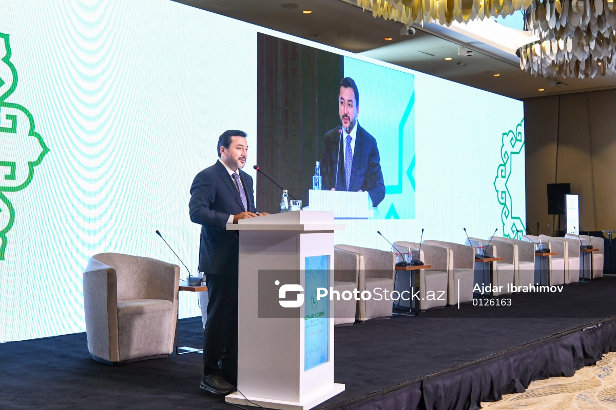 Azərbaycan Halal Biznes Forumunda çıxış edən İslam Əməkdaşlıq Təşkilatı Gənclər Forumunun prezidenti Taha Ayhan.
