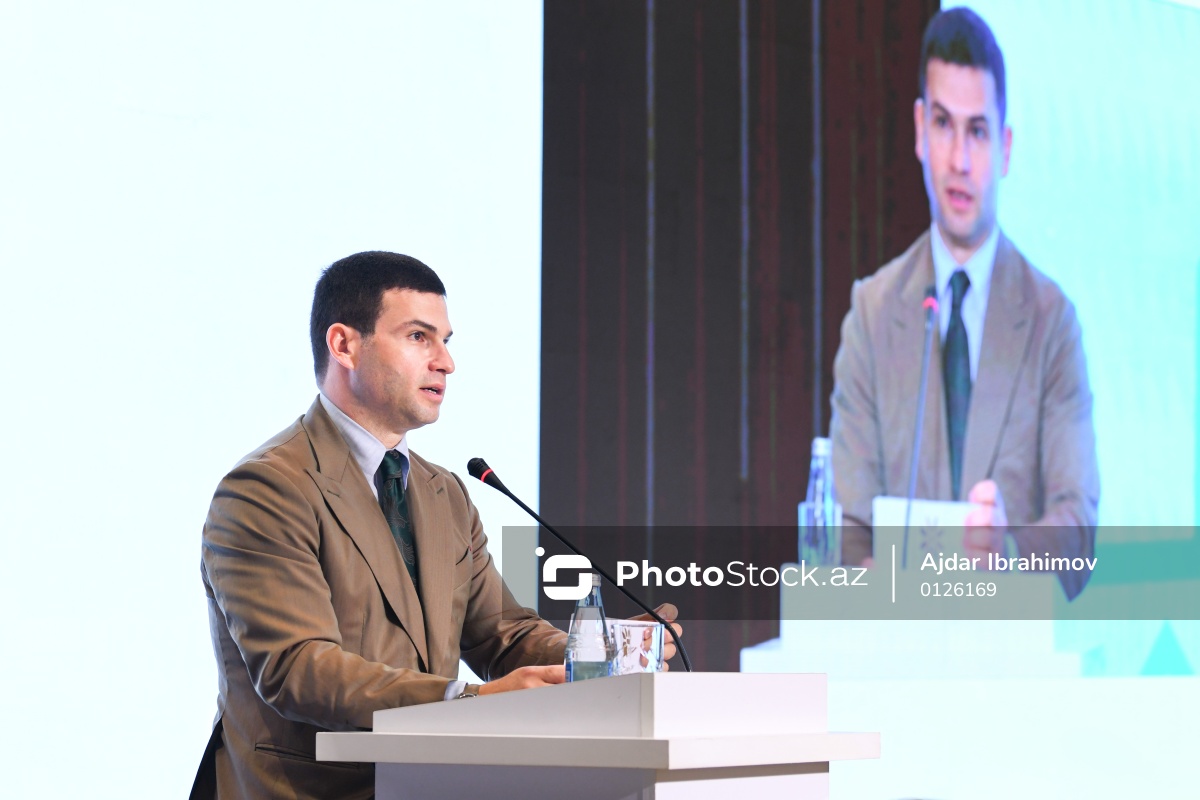 Azərbaycan Halal Biznes Forumunda çıxış edən İqtisadiyyat Nazirliyinin tabeliyindəki Kiçik və Orta Biznesin İnkişafı Agentliyinin (KOBİA) İdarə Heyətinin sədri Orxan Məmmədov.
