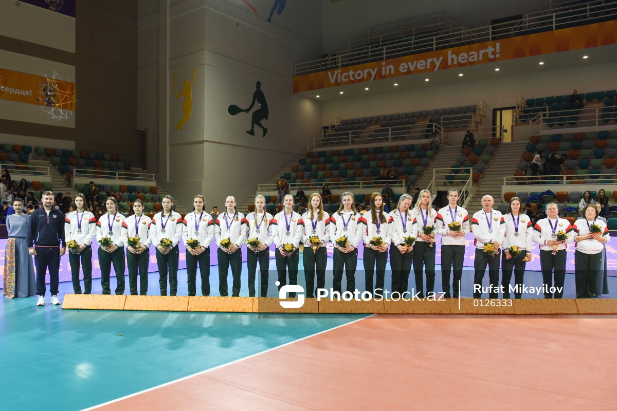 III MDB Oyunlarında gümüş medal qazanan qadınlardan ibarət Belarus U-15 milli voleybol komandası.