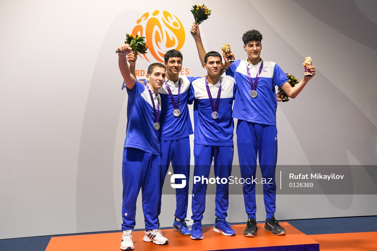 III MDB Oyunlarında qılıncoynatma üzrə yarışlarda gümüş medal qazanan Azərbaycan idmançıları (soldan-sağa) Mirxətai Məmmədov, Emin Səfərbəyov, Oruc Misirzadə, Vahab Fətullayev.