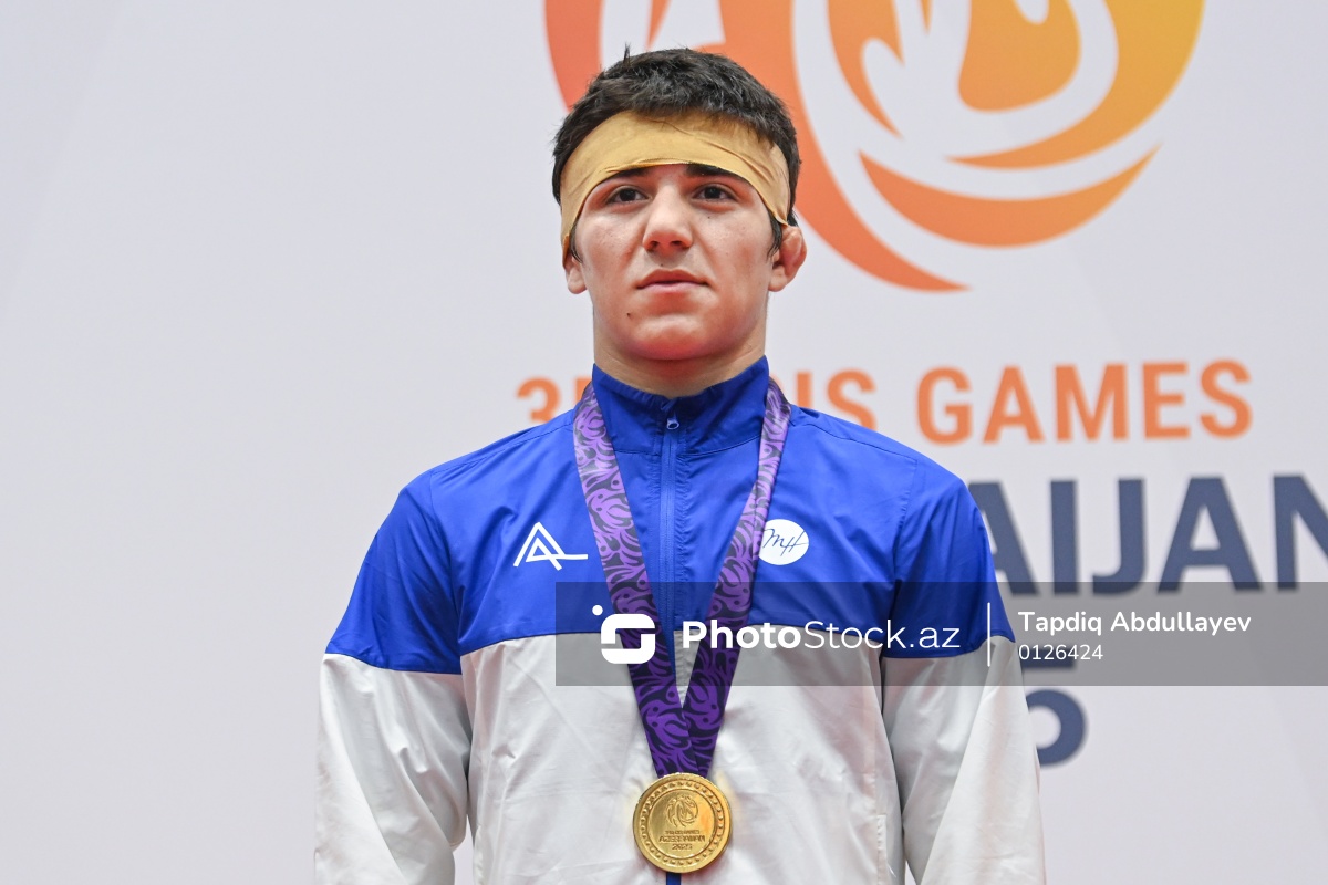 III MDB Oyunlarında yunan-Roma güləşi üzrə 60 kq çəki dərəcəsində qızıl medal qazanan Azərbaycan güləşçisi Əli Nəzərov.