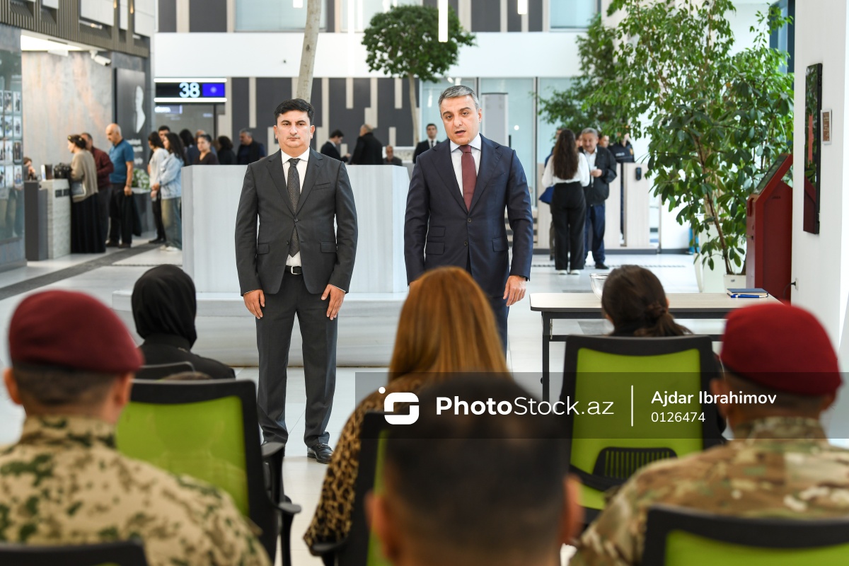 Əmək və Əhalinin Sosial Müdafiəsi Nazirliyinin tabeliyində Sosial Xidmətlər Agentliyinin İdarə Heyətinin sədri Vüqar Behbudov (sol), Əmək və əhalinin sosial müdafiəsi nazirinin müavini Vüsal Nəsirli (sağ).