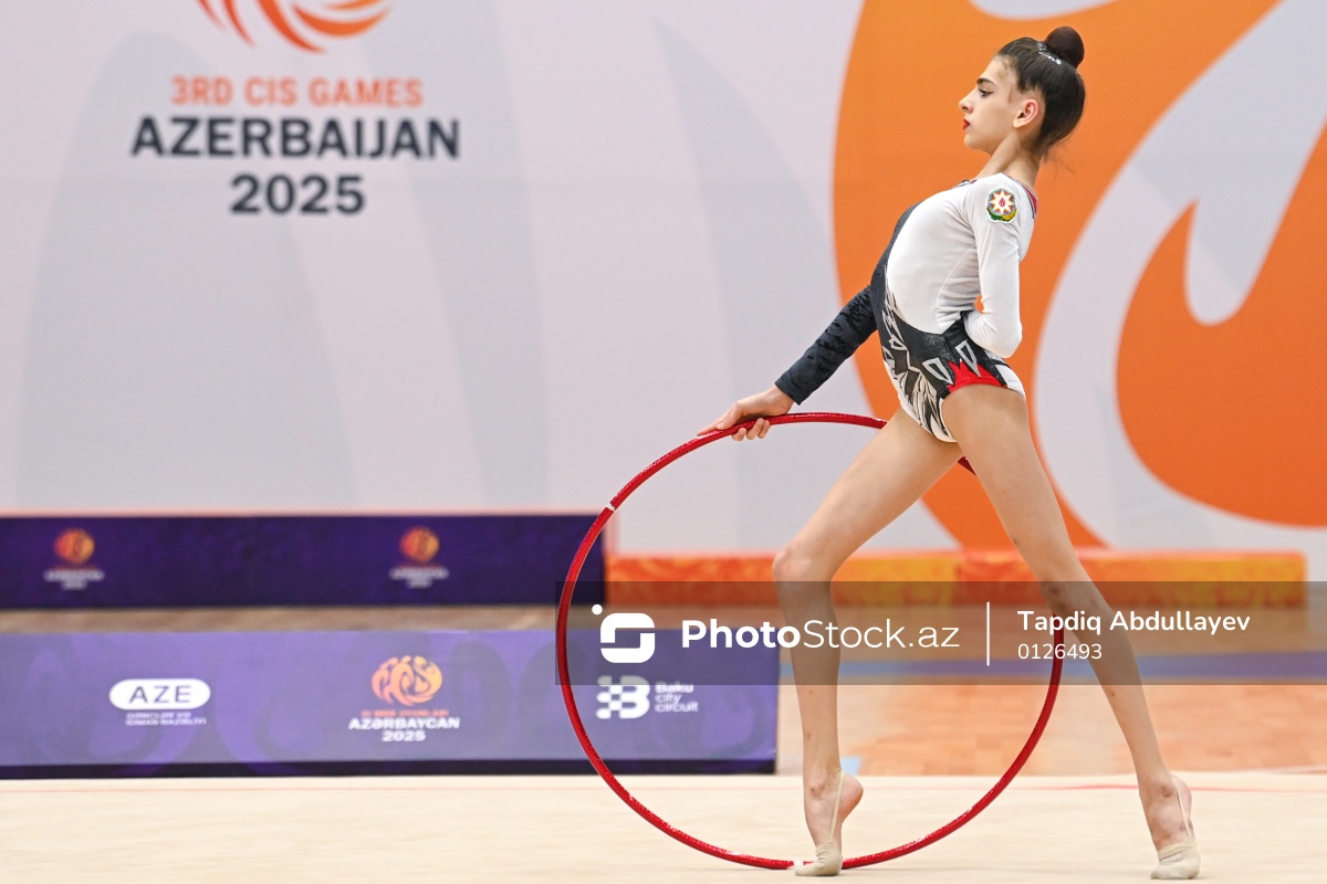 III MDB Oyunlarında bədii gimnastika üzrə yarışlarda mübarizə aparan Azərbaycan təmsilçisi Nur Sadıqova.
