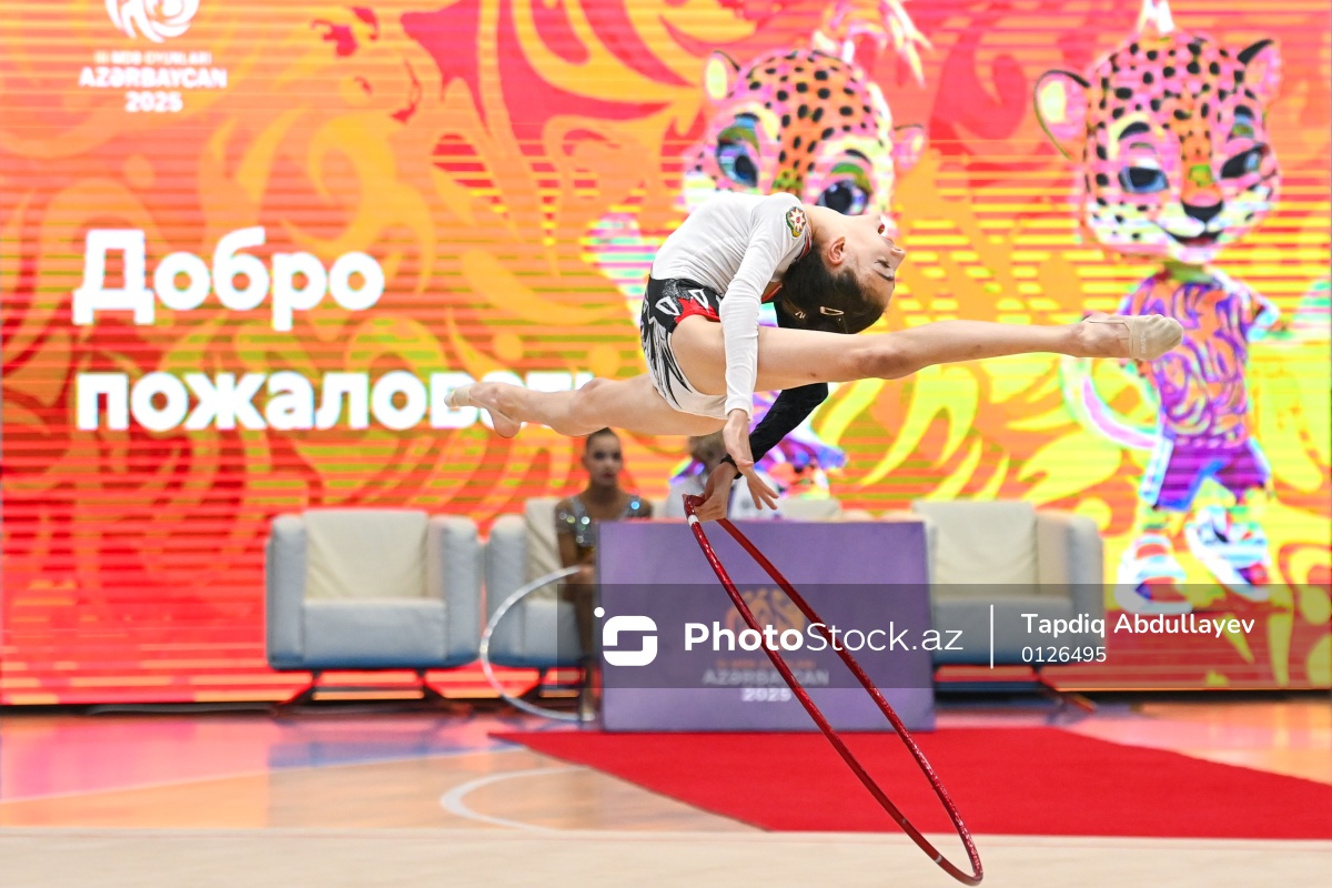 III MDB Oyunlarında bədii gimnastika üzrə yarışlarda mübarizə aparan Azərbaycan təmsilçisi Nur Sadıqova.
