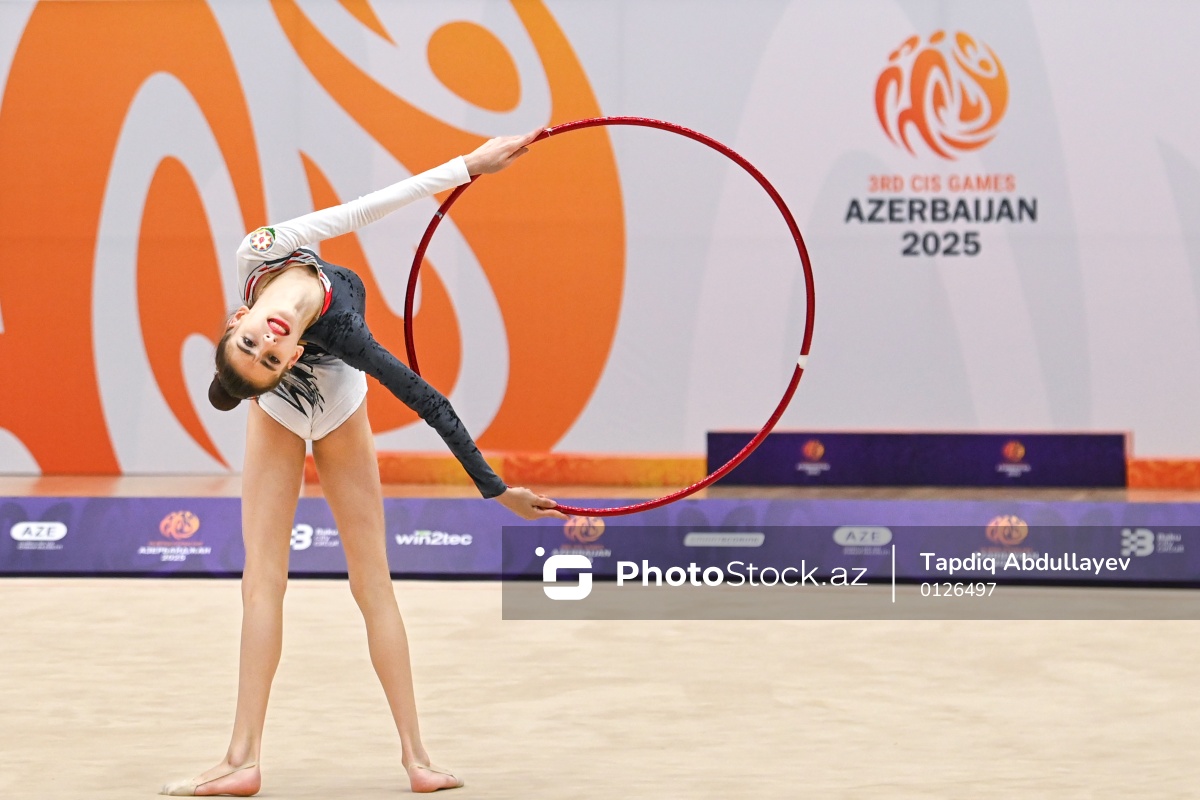 III MDB Oyunlarında bədii gimnastika üzrə yarışlarda mübarizə aparan Azərbaycan təmsilçisi Nur Sadıqova.