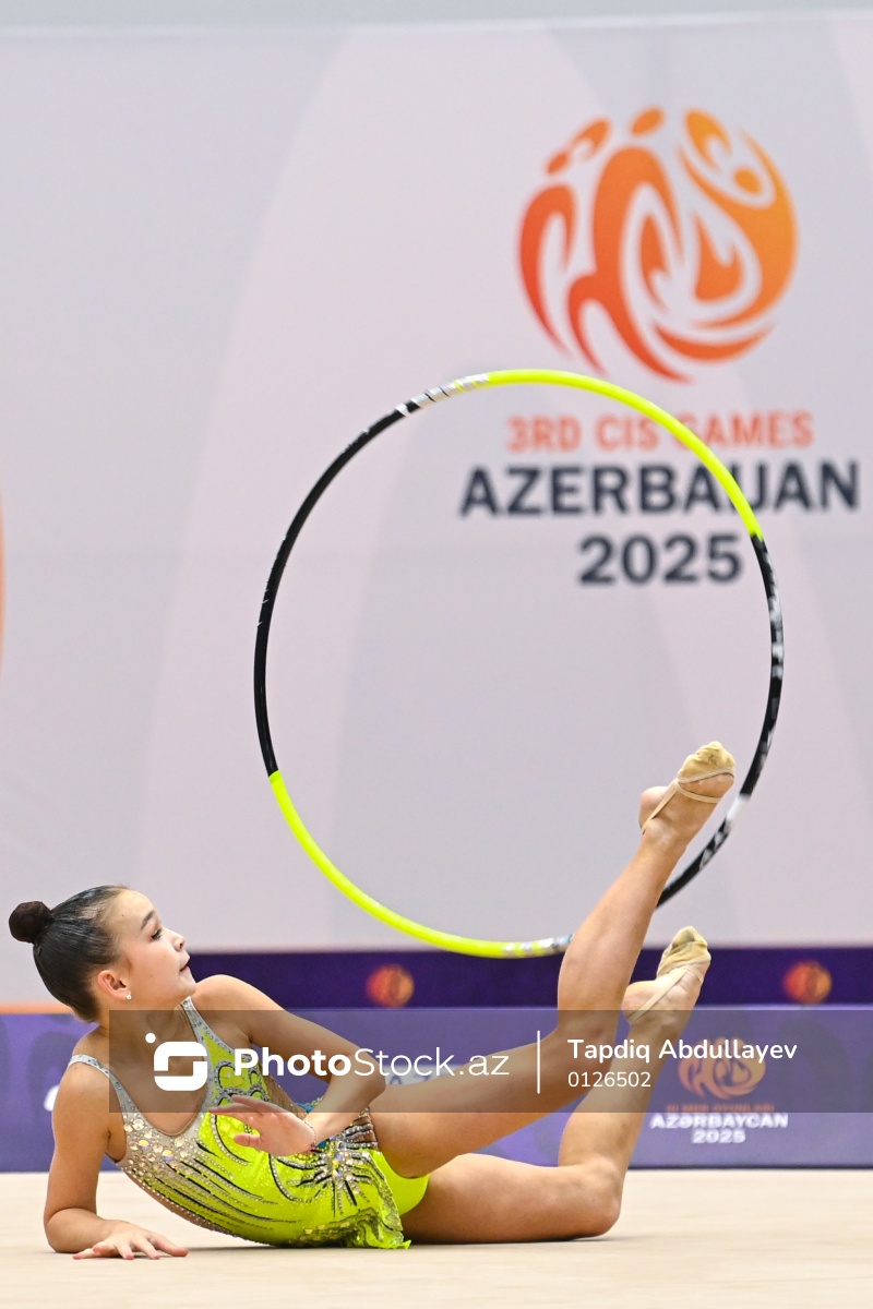 III MDB Oyunlarında bədii gimnastika üzrə yarışlarda mübarizə aparan Qazaxıstan təmsilçisi Linara Zaylauova.