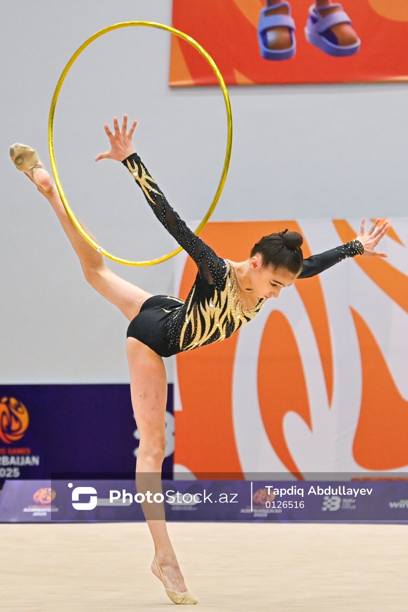 III MDB Oyunlarında bədii gimnastika üzrə yarışlarda mübarizə aparan Azərbaycan təmsilçisi Azadə Atakişiyeva.