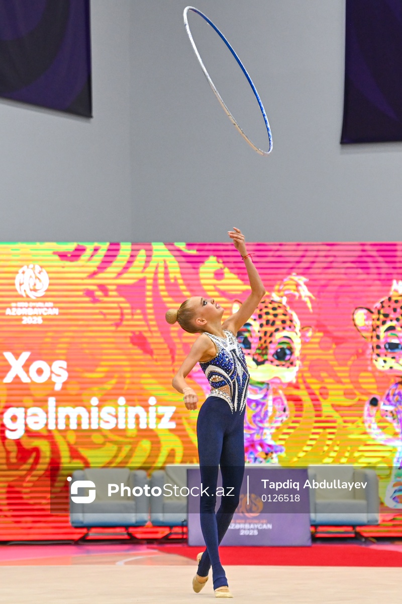 III MDB Oyunlarında bədii gimnastika üzrə yarışlarda mübarizə aparan Belarus təmsilçisi Kira Babkeviç.