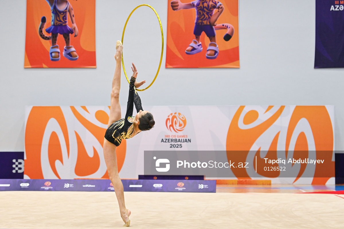 III MDB Oyunlarında bədii gimnastika üzrə yarışlarda mübarizə aparan Azərbaycan təmsilçisi Azadə Atakişiyeva.