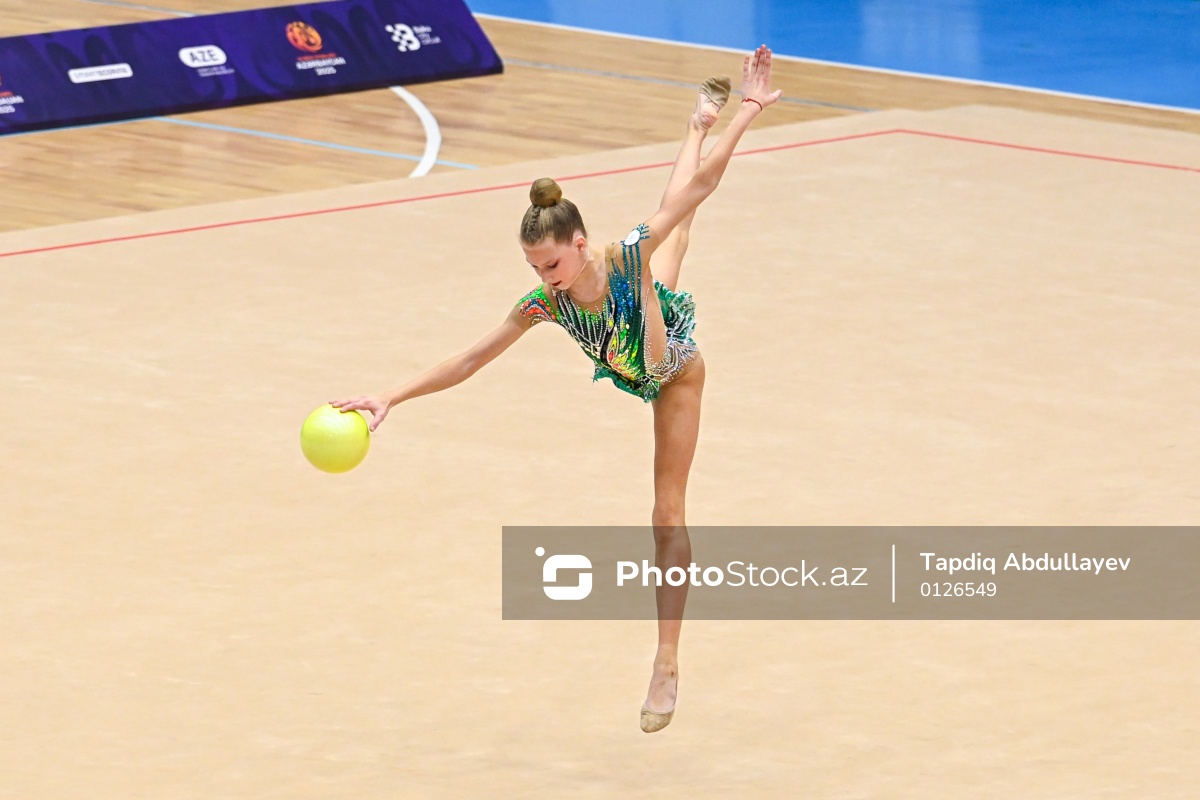 III MDB Oyunlarında bədii gimnastika üzrə yarışlarda mübarizə aparan Rusiya təmsilçisi Eva Çevtayeva.