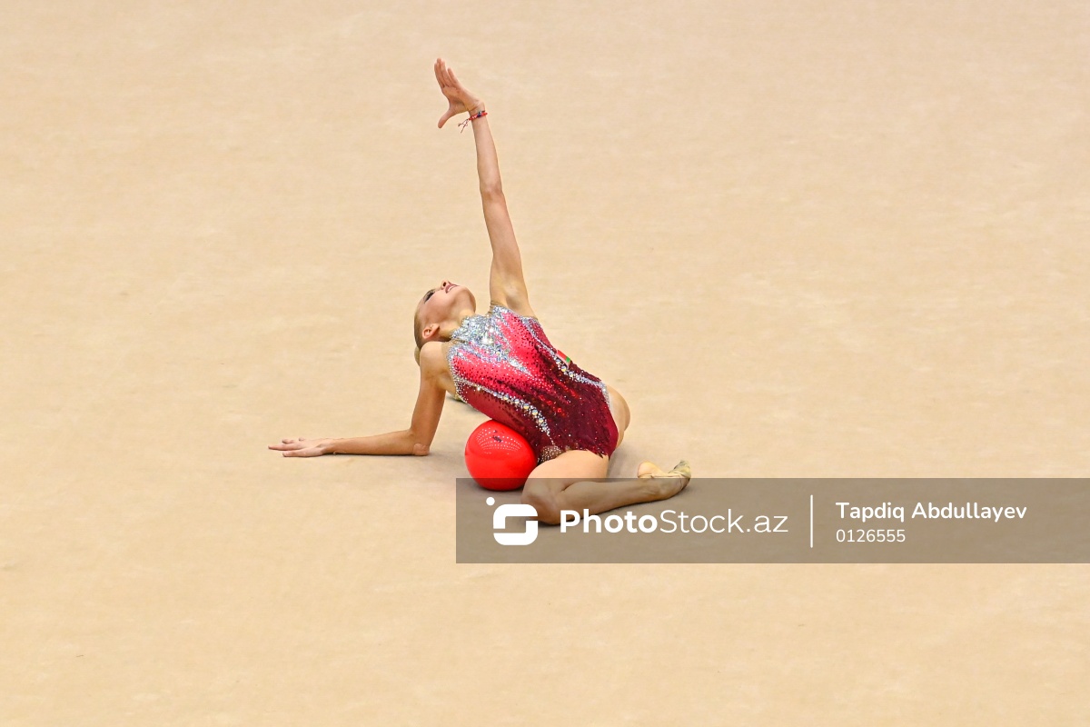 III MDB Oyunlarında bədii gimnastika üzrə yarışlarda mübarizə aparan Belarus təmsilçisi Kira Babkeviç.