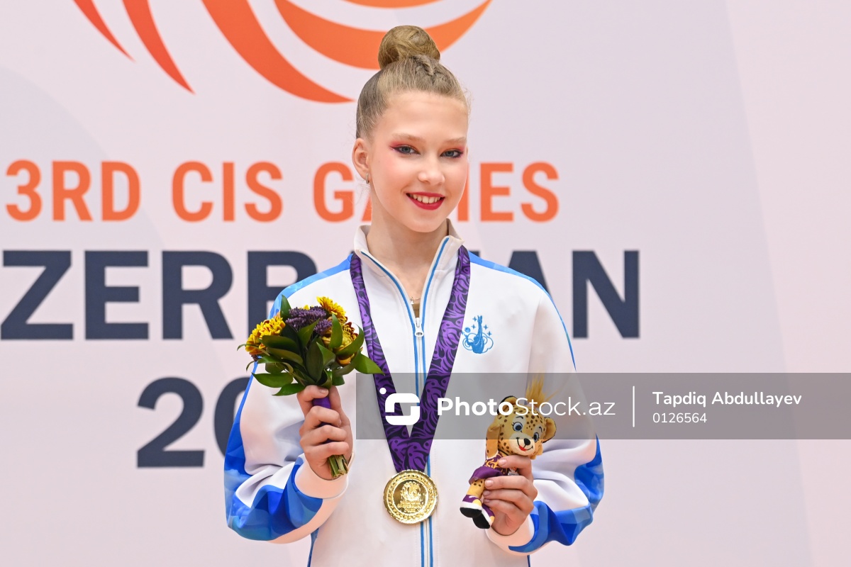 III MDB Oyunlarında bədii gimnastika üzrə yarışlarda qızıl medal qazanan Rusiya təmsilçisi Eva Çevtayeva.