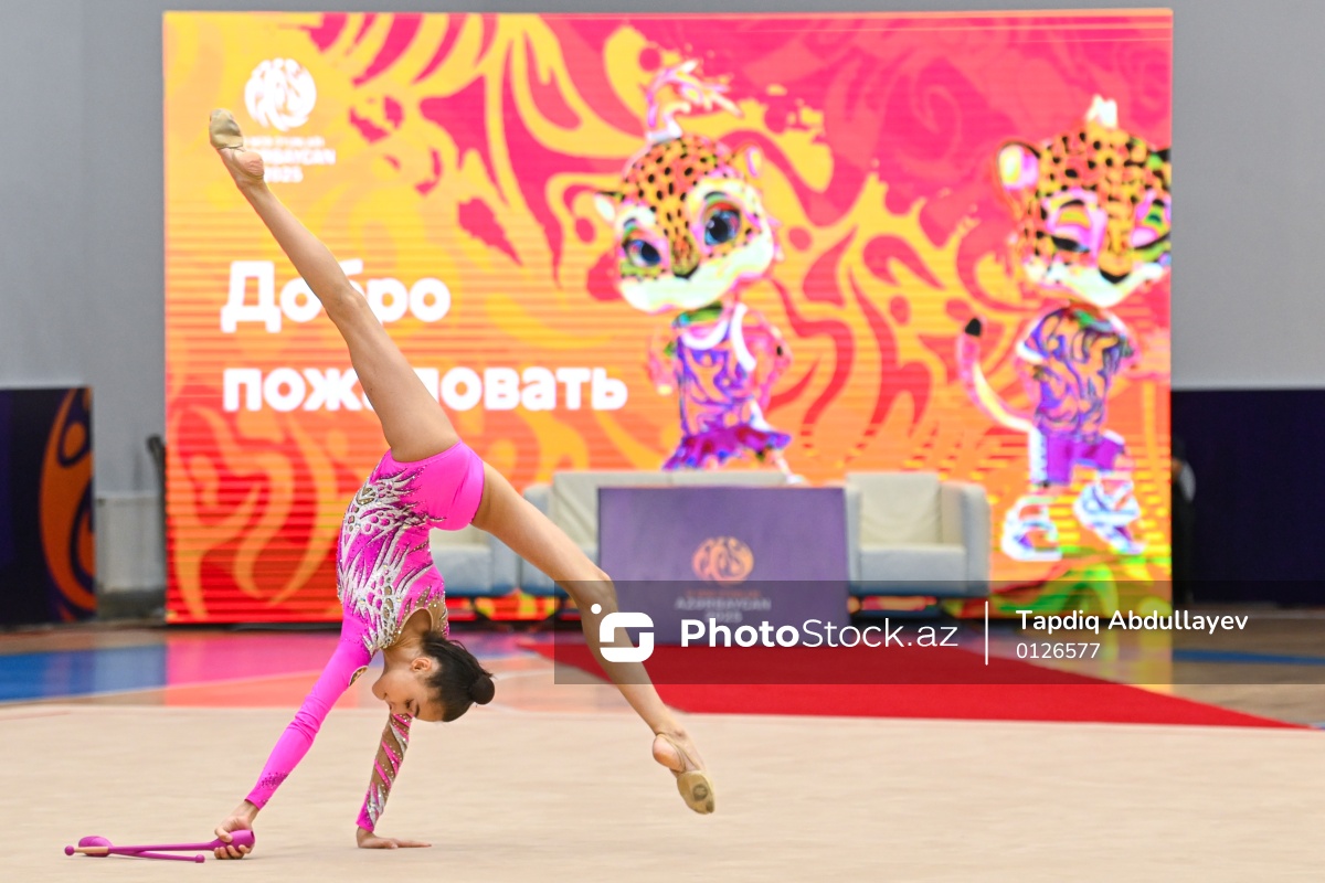 III MDB Oyunlarında bədii gimnastika üzrə yarışlarda mübarizə aparan Azərbaycan təmsilçisi Azadə Atakişiyeva.
