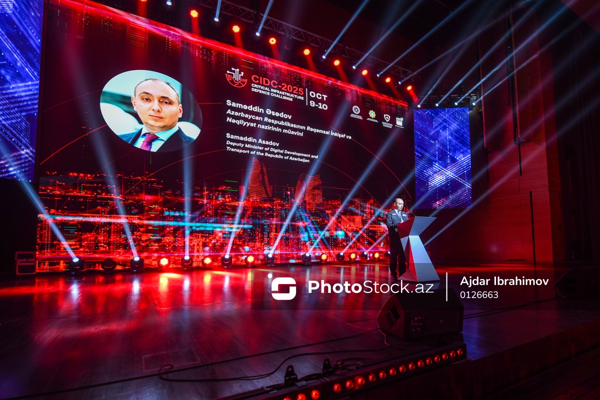 "Critical Infrastructure Defence Challenge" ("CIDC 2025") kibertəhlükəsizlik festivalında çıxış edən Azərbaycan Respublikası Rəqəmsal İnkişaf və Nəqliyyat nazirinin müavini Saməddin Əsədov.