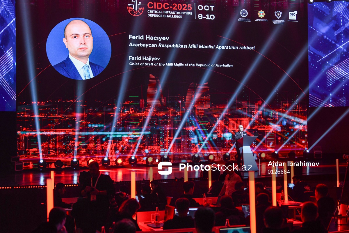"Critical Infrastructure Defence Challenge" ("CIDC 2025") kibertəhlükəsizlik festivalında çıxış edən Milli Məclis Aparatının rəhbəri Fərid Hacıyev.