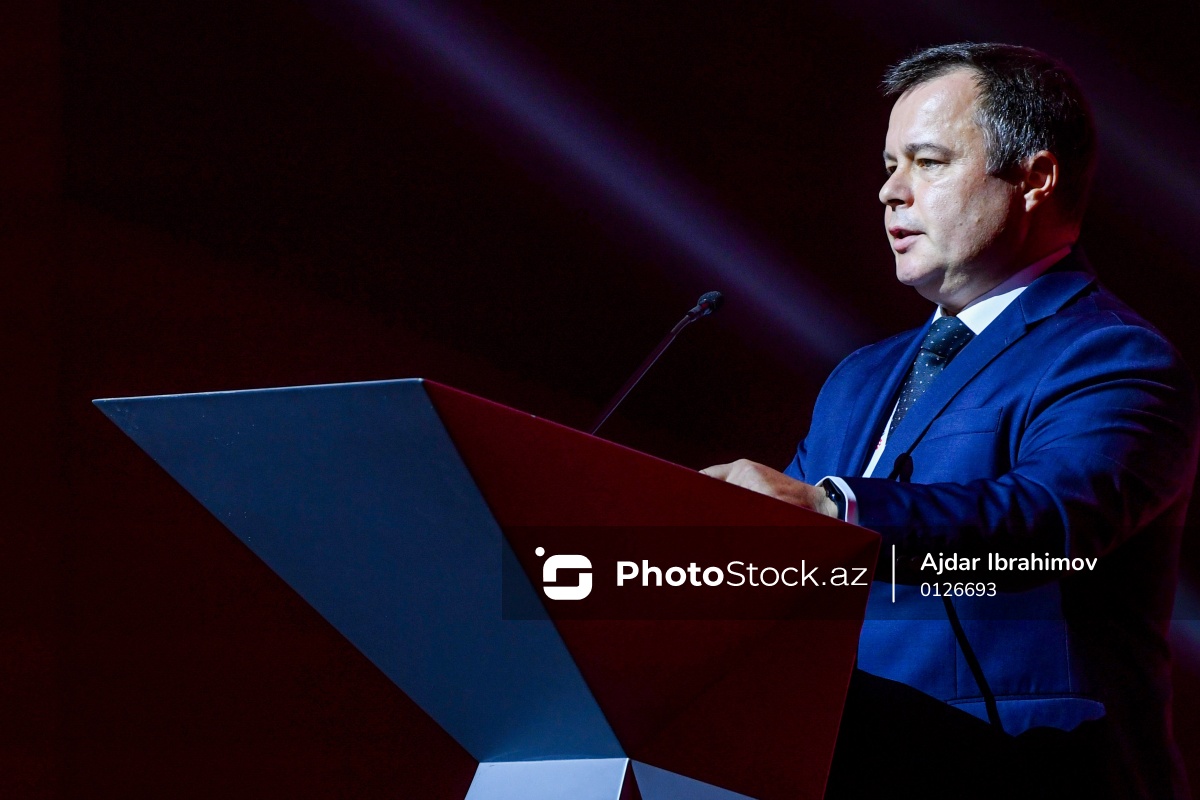 "Critical Infrastructure Defence Challenge" ("CIDC 2025") kibertəhlükəsizlik festivalında çıxış edən Moldova Respublikasının Azərbaycan Respublikasındakı fövqəladə və səlahiyyətli səfiri Aleksandr Esaulenko.