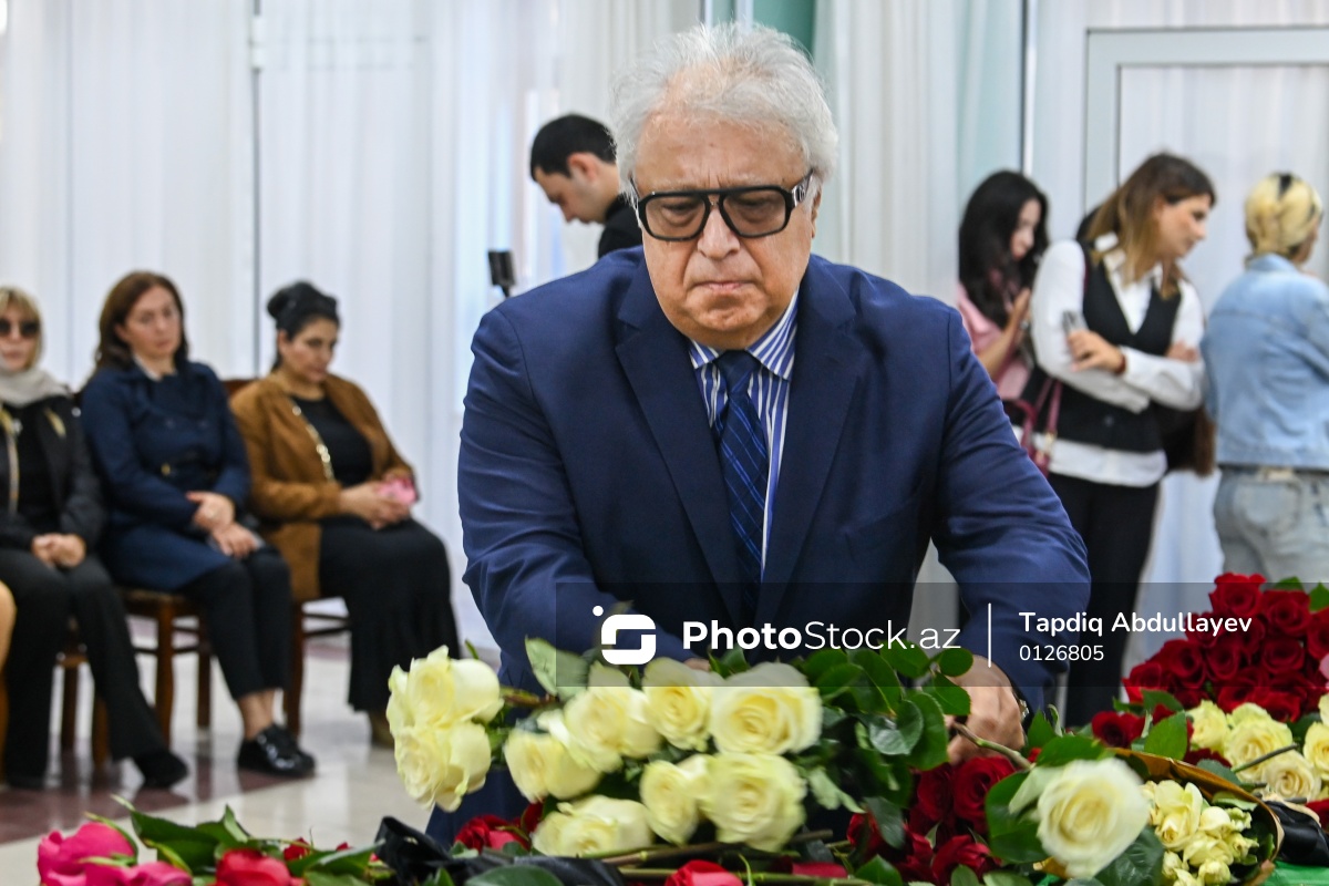 Xalq artisti Əminə Yusifqızının vida mərasimində iştirak edən Bakı Musiqi Akademiyasının rektoru, Xalq artisti, Fərhad Bədəlbəyli.