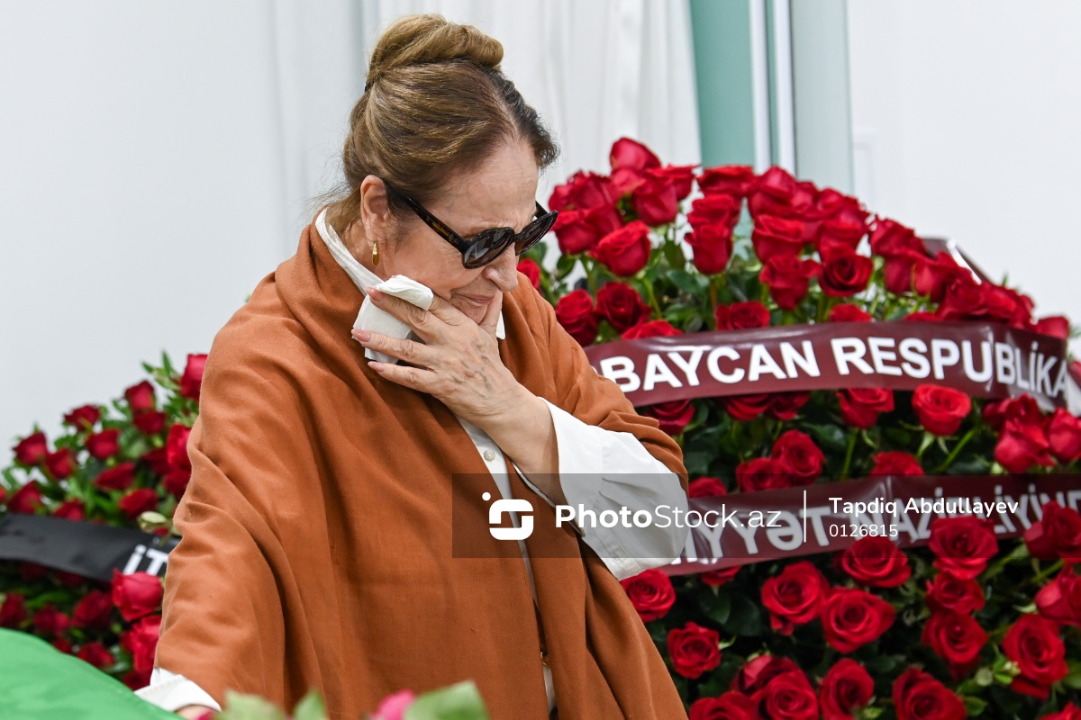 Xalq artisti Əminə Yusifqızının vida mərasimində iştirak edən Xalq artisti, aktrisa Şəfiqə Məmmədova.