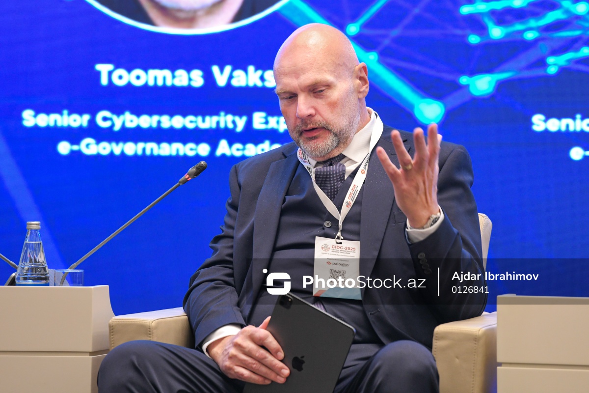 "Critical Infrastructure Defence Challenge" ("CIDC 2025") kibertəhlükəsizlik festivalı çərçivəsində “Kritik infrastruktur risk altındadır: təhlükəsizlik strategiyalarının yenilənməsinə çağırış” başlıqlı paneldə çıxış edən Estoniyanın Elektron İdarəçilik Akademiyasının kibertəhlükəsizlik üzrə baş mütəxəssisi Toomas Vaks.
