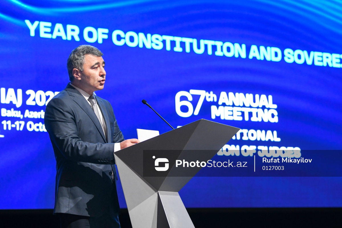 Beynəlxalq Hakimlər Assosiasiyasının 67-ci Baş Assambleyası çərçivəsində "Konstitusiya və Suverenlik İli"nə həsr olunmuş "Məhkəmə hakimiyyəti və dövlətin digər iki qolu arasında münasibətlər" mövzusunda beynəlxalq konfransda çıxış edən Ali Məhkəmənin sədri İnam Kərimov.