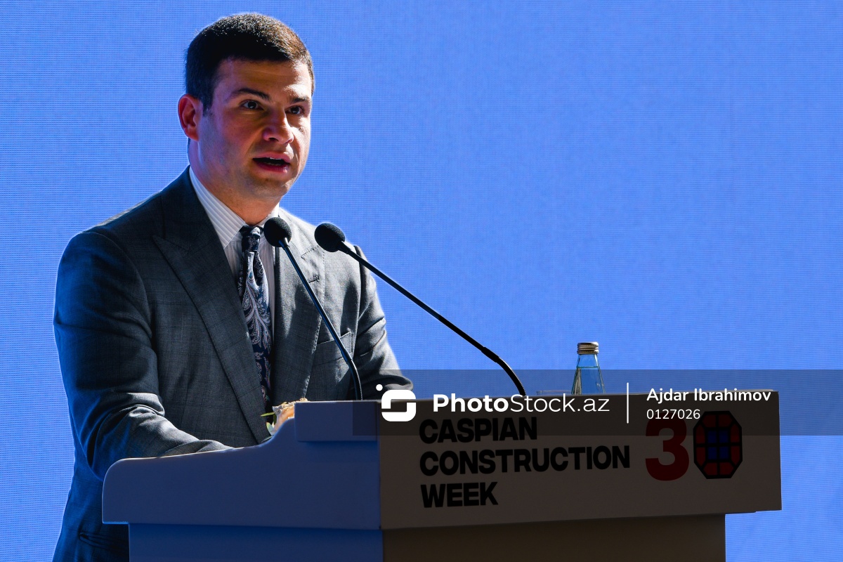 Bakı Ekspo Mərkəzində keçirilən "Rebuild Karabakh-2025" sərgisinin açılış mərasimində çıxış edən İqtisadiyyat Nazirliyi yanında Kiçik və Orta Biznesin İnkişafı Agentliyi İdarə Heyətinin sədri Orxan Məmmədov.